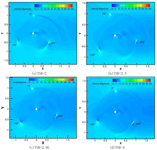 Velocity cloud diagram of two-dimensional wind generator with different TSR.