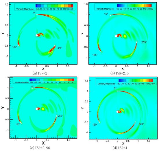Vorticity diagram of two-dimensional wind generator with different TSR.