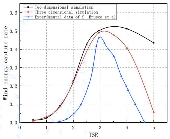 The wind energy capture rates of the 2D and 3D simulations are higher than that of the experimental results for three main reasons: