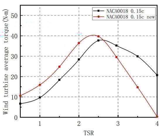 Variation curve of average torque with tip speed ratio before and after optimization.