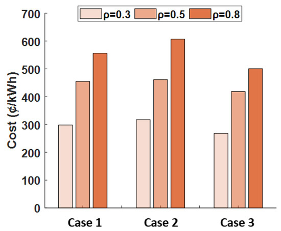 The electricity cost of case 3 is USD 4.2, which is 31% lower than the base case, 9% lower than Case 1, and 10% lower than Case 2.