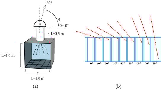 Figure 1. (a) View of the testing room. (b) Incident angle.