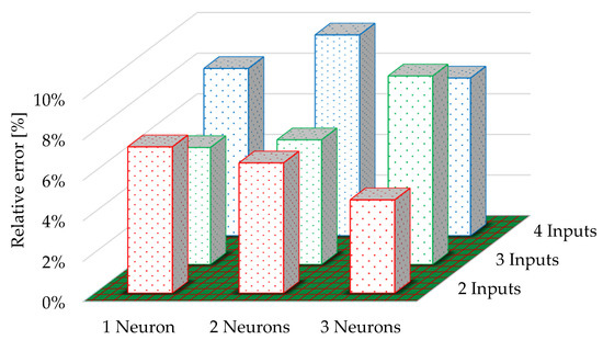 Figure 3 presents selected results of the optimization process for various tested network structures which differ in the number of input parameters and the number of neurons in the hidden layer, and which obtained the greatest degree of matching to the research data in many iterations.