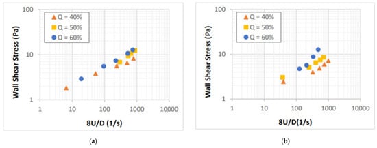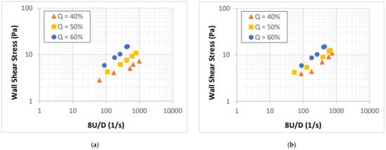 Foam rheology tests were performed to ensure proper foam generation for drainage experiments and study the effect of salt concentration on the flow behavior of aqueous foams. In Figure 5, rheology measurements of NaCl salt-containing foams. The data is presented in form of the wall shear stress versus nominal Newtonian shear rate (8U/D). All measurements were obtained under laminar flow conditions (Reynolds number less than 2100). As anticipated, the viscosity of the foams increased with their quality. Measurements obtained from low-quality foam (40%) form an approximately straight line on a logarithmic plot indicating a constant slope, which can be used to determine the power-law rheology model parameter, n. The introduction of the salt did not have a significant effect on the viscosity of the foams.