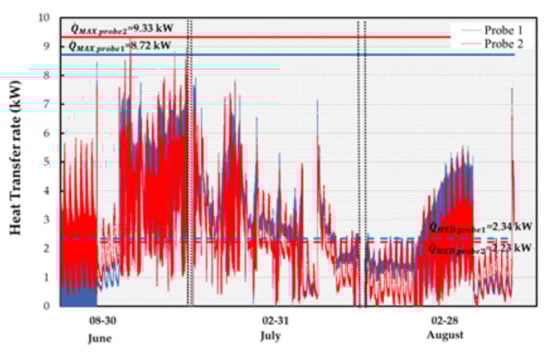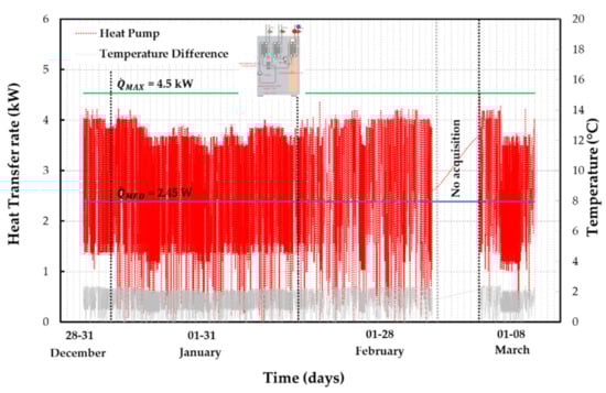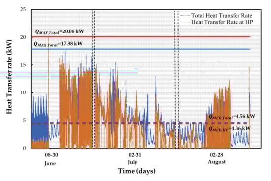 Figure 7). In particular, both the maximum and average thermal power are equal to 18.1 kW and 4.6 kW, respectively, in the period from 13 June 2018 to 26 June 2018.