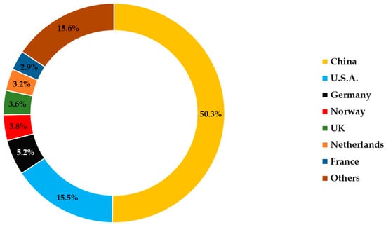Globally, the People’s Republic of China is the largest electric car market. This is confirmed by the fact that in 2018, 45% of electric cars were circulating only here [56]. China also sold around 1.1 million cars in 2019, holding a 50% market share [18]. The United States is far behind, and with 326,640 cars registered in 2019, it held a market share of 15.5%, as shown in Figure 2. It can be seen how the largest market share of electric cars is held by countries with high purchasing power and seems to confirm the study by Rietman et al. [39]. However, a high income may not necessarily be a condition that favors the purchase of an electric vehicle.