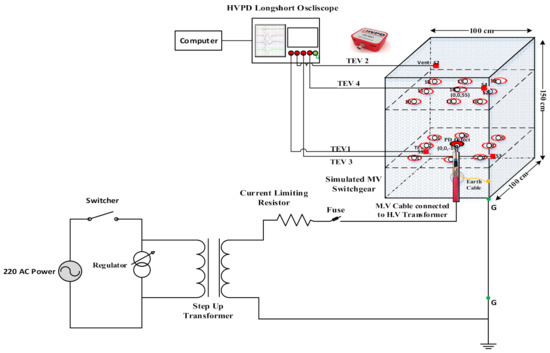 Experiments were conducted by using an experimental setup using the TEV PD detection system shown in Figure 2. The system consists of,