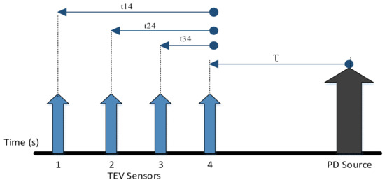 The time taken from PD source to nearest TEV sensor is denoted Ʈ as depicted in Figure 5.