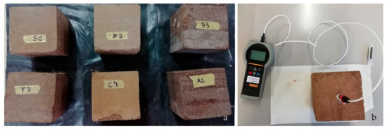 Once cured, samples were first weighted and then oven-dried at 105 °C, till the differences in two following measurements were lower than 0.1% of the initial weight. After this, we compared the final weight with the initial weight and, if no major differences were registered, we assumed that the dry weight of the material had been calculated and, knowing its volume, the dry density. Samples were then allowed to cool until they reached thermal equilibrium with the laboratory room: temperature equilibrium was assessed by comparing the room temperature with the sample temperature as measured with a needle probe.