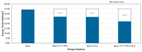 where (PEC)BS is the absolute maximum value of energy demand for space cooling of the building; i-th = 1, −4 are the possible design configurations (Base, Base + N.V.50, Base + Over, Base + N.V.50 + Over).