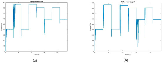 Output power of PV1 after optimization by GA: (a) With SARSA control method and (b) Q-learning method.