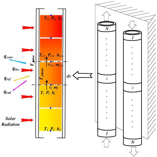 - Axial conduction between the adjacent control volumes is neglected because the convection between the inner wall of the tube and the molten salt dominates the heat transfer in the tube.