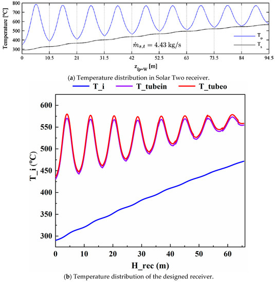 - Wang, W.Q.; Qiu, Y.; Li, M.J.; He, Y.L.; Cheng, Z.D. Coupled optical and thermal performance of a fin-like molten salt receiver for the next-generation solar power tower. Appl. Energy 2020, 272, 115079. [Google Scholar] [CrossRef]