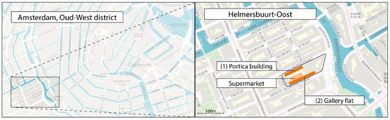 | (1) Tenement building (1926), 5 floors 47 hous-holds 1 Current average energy label: E or D (range G–D) 3 (energy label varies per cluster) (2) Gallery building (1965), 6 floors 68 households 1 Current average energy label: C (range D–B) 3 | Lidl Helmersbuurt (constructed in 2007) Inner dimensions: 15.4 m × 46.0 m × 2.9 m Sales floor area: 715 m2 Located at the ground floor of the city block | Conventional closed greenhouse. Located at the rooftop of the residential buildings. Max. dimensions 2 : (1) Rooftop tenement building: 10.8 × 78.8 = 851 m2 (2) Rooftop gallery building: 8.0 × 107.0 = 856 m2 |