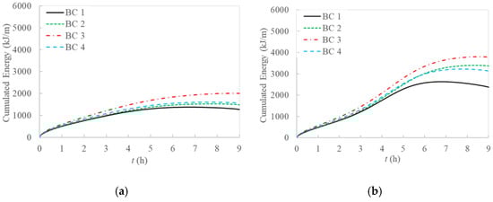 Cumulated energy for 2D model: (a) without natural convection; (b) with natural convection included in the model.