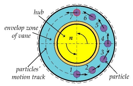 The kinematic analysis of a single particle under the action of the vane.