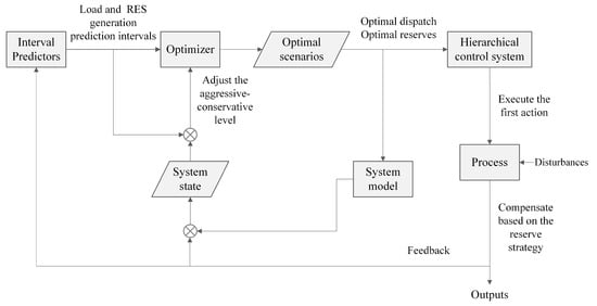 Figure 4 shows the flowchart of our method using the MPC approach, where some major processes of the adaptive reserve strategy are also displayed. In addition to the general operations of the MPC approach, the state of the system is also re-evaluated after the feedback so that the aggressive-conservative level is adjusted accordingly to regulate optimization and scheduling. Compensation operations are also added in the actual implementation.