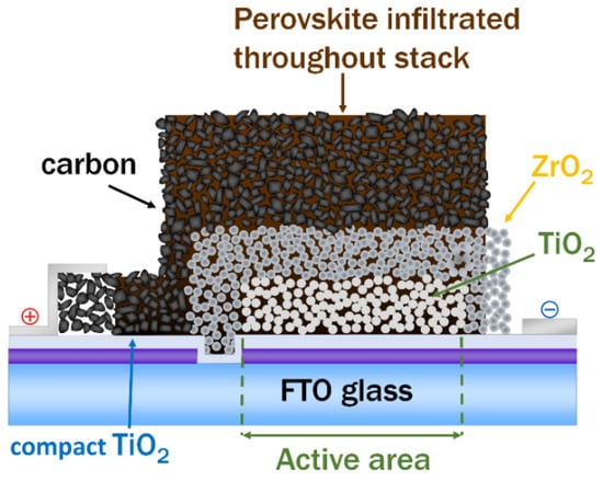 - Low material costs—unlike in many conventional PSCs, expensive noble metals and organics that require costly purification processes (like spiro-OMeTAD) are not required [24];