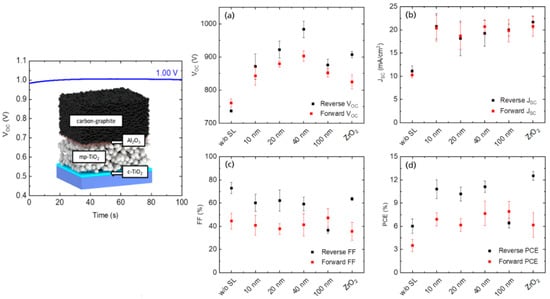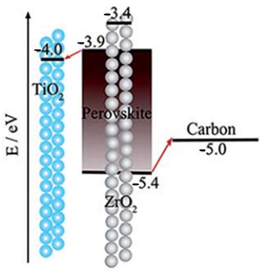- Meng, Z.; Guo, D.; Yu, J.; Fan, K. Investigation of Al2O3 and ZrO2 spacer layers for fully printable and hole-conductor-free mesoscopic perovskite solar cells. Appl. Surf. Sci. 2018, 430, 632–638. [Google Scholar] [CrossRef]