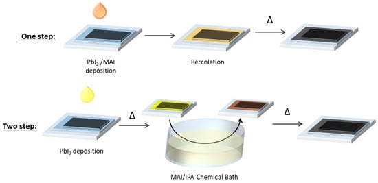 - Saliba, M.; Correa-Baena, J.-P.; Wolff, C.M.; Stolterfoht, M.; Phung, N.; Albrecht, S.; Neher, D.; Abate, A. How to Make over 20% Efficient Perovskite Solar Cells in Regular (n–i–p) and Inverted (p–i–n) Architectures. Chem. Mater. 2018, 30, 4193–4201. [Google Scholar] [CrossRef]