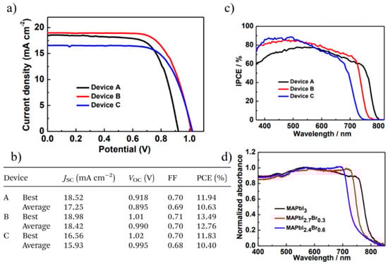 - Lee, M.M.; Teuscher, J.; Miyasaka, T.; Murakami, T.N.; Snaith, H.J. Efficient Hybrid Solar Cells Based on Meso-Superstructured Organometal Halide Perovskites. Science 2012, 338, 643–647. [Google Scholar] [CrossRef] [PubMed]