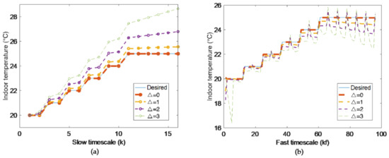 Figure 3 shows the states and the desired temperature under different values in the slow timescale and fast timescale. We see that the deviation from desired temperature become more with the increase of Δ. When Δ < 3, deviations are acceptable.