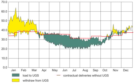 The course of demand and supply of high-methane natural gas in 2006; (UGS, underground gas storage) [3].