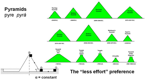 - Bejan, A.; Perin, S. Constructal Theory of Egyptian Pyramids and Flow Fossils in General. In Advanced Engineering Thermodynamics, 3rd ed.; Wiley: Hoboken, NJ, USA, 2006. [Google Scholar]