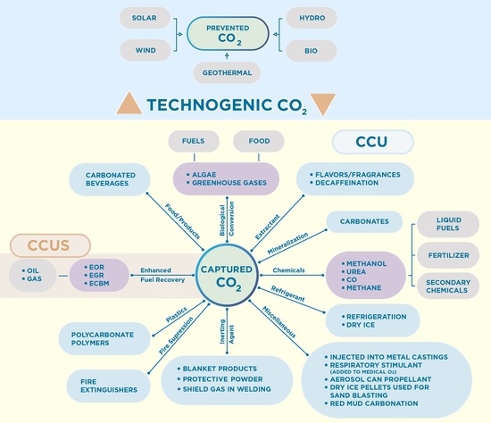 - Bobeck, J.; Peace, J.; Ahmad, F.M.; Munson, R. Сarbon Utilization—A Vital and Effective Pathway for Decarbonization; Center for Climate and Energy Solutions: Arlington, VA, USA, 2019. [Google Scholar]