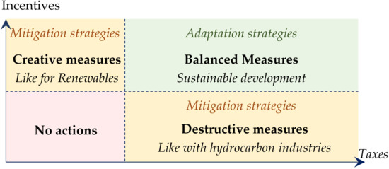 Carbon taxes are a widespread instrument of modern climate policy, which have been implemented in more than 25 regions [26]. Despite widespread use, such relatively simple tax regimes cannot fully address GHG emissions [27]. First, there are inequalities in access to raw materials. Therefore, the main supporters of such a measure will be the importing countries of raw materials, which is quite clearly demonstrated at the example of the European Union. Secondly, in an effort to show the devastating impact of CO2 on the environment, we are moving further into long-term forecasting, which complicates implication of real market mechanisms. Thirdly, when comparing the tariffs for renewable energy sources (RES) and hydrocarbon power generation, it is usually not mentioned that the competitiveness of RES is ensured by state support. Moreover, we do not take into account that further intensification of RES generation will require the development of storage and transportation infrastructure, which will lead to increased government influence on tariffs. Fourth, today there are no effective mechanisms to assess and control the carbon intensity of imported products. Fifth, there are many questions about the methodology of determining the amount of carbon tax, which are usually based on the so-called Social Cost of Carbon (SCC).