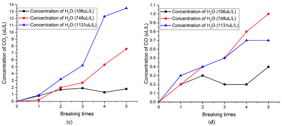 - When H2O was involved in the arc plasma, the main by-products were SOF2, SO2, SO2F2, and HF. At the same time, a small amount of CO2, CO, and H2 was produced. After five breaking experiments, the concentration of SOF2 can reach 1200 ppm, and the concentration of SO2 and CO2 was lower than 20 ppm, while the concentration of CO was lower than 2 ppm. Contrary to the simulation results, SO2F2 and HF were hardly detected in this experiment.