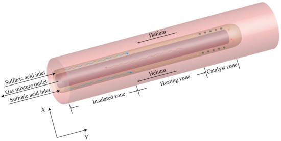 - Sun, Q.; Gao, Q.; Zhang, P.; Peng, W.; Chen, S.; Zhao, G.; Wang, J. Numerical study of heat transfer and sulfuric acid decomposition in the process of hydrogen production. Int. J. Energy Res. 2019, 43, 5969–5982. [Google Scholar] [CrossRef]