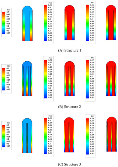 - Structure 2 studied in this paper has better performance than structure 1. The reason is that the higher velocity of the fluid in the tube enhances the heat transfer, and the larger catalytic volume increases the sulfuric acid decomposition rate.