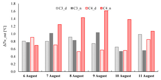 Average difference in outer wall surface temperature between rooms during the day (C3_d, C4_d) and night (C3_n, C4_n) (6-C3 vs. 8-C3, 6-C4 vs. 8-C4).