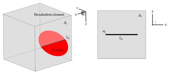where is the total number of fractures in the volume (finite) element; is the aperture of the fracture; is the length of intersection line on the element interface; is the cross-section area in the corresponding direction (Figure 4). is represent the permeability of a finite element in and direction (local coordinate system), respectively.
