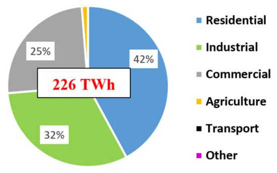 Figure 1. Electricity consumption by sector in Indonesia (2016 figures).