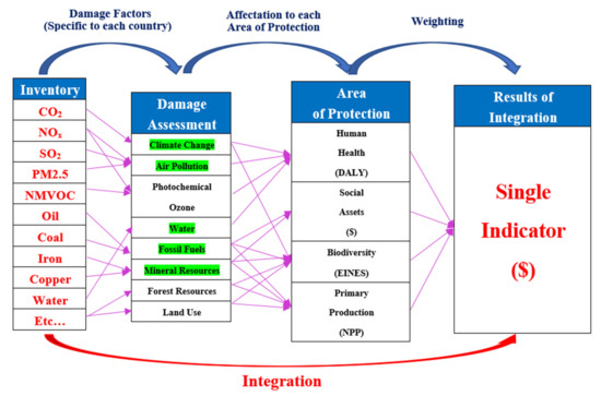 19. Murakami, K.; Itsubo, N.; Kuriyama, K.; Yoshida, K.; Tokimatsu, K. Development of weighting factors for G20 countries. Part 2: Estimation of willingness to pay and annual global damage cost. Int. J. Life Cycle Assess. 2017, 23, 2349–2364. [Google Scholar] [CrossRef]