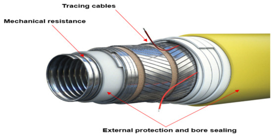 The new boundaries for subsea petroleum exploitation are the ultra-deepwater (about 3000 m) [53]. This demands pipes in the end (around 25 years) that can withstand the hostile environmental and mechanical request [53]. One important ingredient for passive insulation is to evade the hydrates and wax deposition in flowlines [53]. Hydrocarbon fluid flow preservation and the capacity to start over the production system during subsea deepwater oil and gas production is a major concern [53,67]. Heat management of the hydrocarbon effluent has been observed in the past 5–10 years as the most accustomed tool for curbing obstruction in the flowlines [53].