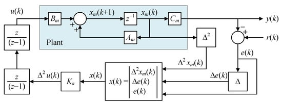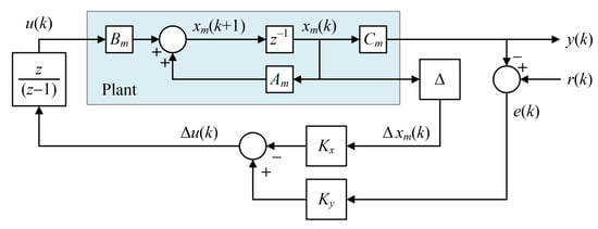 The closed-loop GPC system described in [32] can be described as shown in Figure 2, where the block indicates the discrete delay operator, is the discrete transfer function equivalent to the operator, while corresponds to the discrete-time integrator. The plant input is obtained by integrating in (27).