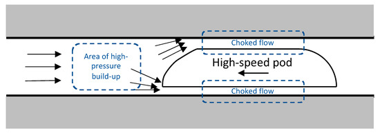 While designing high-speed transportation systems, a critical factor that determines the energy consumption by the system is the aerodynamics of the vehicle. The “piston effect” is an aerodynamic issue that is recognized by researchers while designing vehicles passing through enclosed spaces such as tunnels. As a vehicle such as a high-speed train or the Hyperloop pod travels through a tunnel, the walls around the vehicle form a space constraint and restrict the airflow around the profile of the vehicle [10]. This leads to a pressure buildup at the front of the vehicle and creates an effect similar to the pressure increase inside a mechanical plunger. This effect is termed as the “piston effect” or the “plunger effect” [11]. In addition, the viscous fluid around the vehicle creates a drag force known as the “skin drag.”