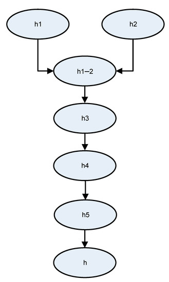 Step 1: The choice of the supply states and their dependencies and independencies. In the example below, the intermediate hypotheses h1 and h2 are independent, whereas the remaining intermediate ones are dependent.