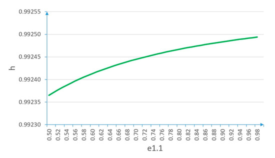 Figure 10 shows the influence of the observation factors related to the correct operation of the main (external) power supply. The range of the e1.1 factor was from 0.5 to 0.99.