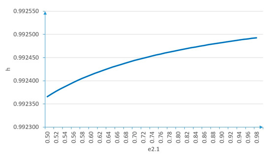 Figure 11 shows the influence of the observation factors related to the correct operation of the backup (local) power supply. The range of the e2.1 factor was from 0.5 to 0.99.