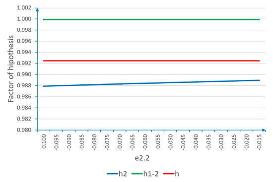 Figure 12 shows the impact of the values of the observation factors related to the incorrect operation of the backup (local) power supply using the e2.2 observation. The range of the e2.2 factor was from −0.1 to −0.01.