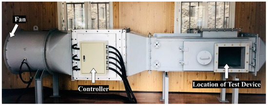 Image of a custom-made wind tunnel to evaluate the characteristics of a wind energy harvester.