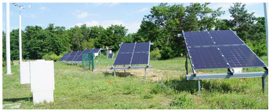 At the UTP University of Science and Technology in Bydgoszcz, at the Faculty of Mechanical Engineering at the Institute of Manufacturing Technique, a photovoltaic installation was built (Figure 7). This installation consists of 20 Hanplast bifacial photovoltaic panels, where each panel consist of cells made in smart-wire technology with a power of 0.305 kWp. The technical data of the panels are included in Table 1. The panels are facing south and inclined at an angle of 45°. They are located on the ground (meadow area), which has a positive effect on their gravity cooling compared to PV installed on the roof surface.