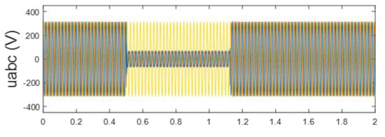 According to Figure 1, under the symmetrical fault (i.e., the worst case of voltage sags), the unbalanced energy generated during faults can be expressed as: