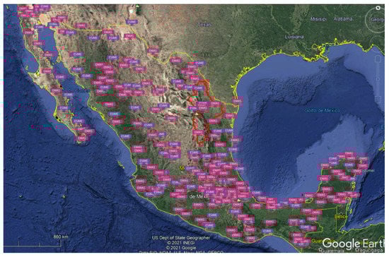 - Estaciones Meteorológicas Automáticas (EMAS). Available online: https://smn.conagua.gob.mx/es/observando-el-tiempo/estaciones-meteorologicas-automaticas-ema-s (accessed on 7 July 2021).