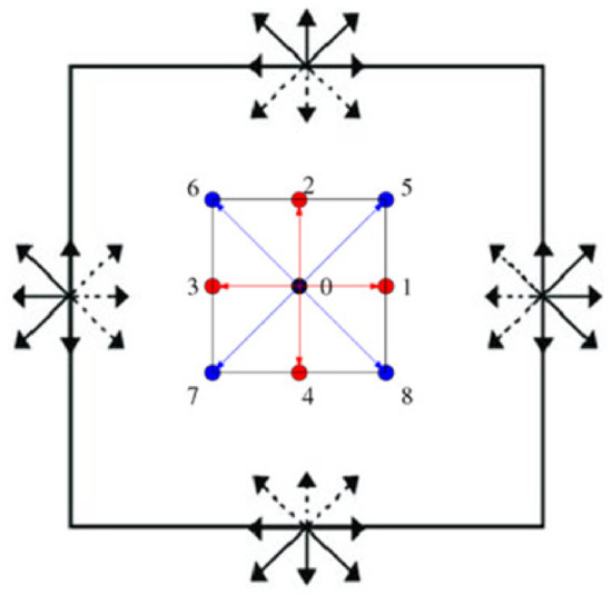 - Goodarzi, M.; D’Orazio, A.; Keshavarzi, A.; Mousavi, S.; Karimipour, A. Develop the nano scale method of lattice Boltzmann to predict the fluid flow and heat transfer of air in the inclined lid driven cavity with a large heat source inside, Two case studies: Pure natural convection & mixed convection. Phys. A Stat. Mech. Appl. 2018, 509, 210–233. [Google Scholar]