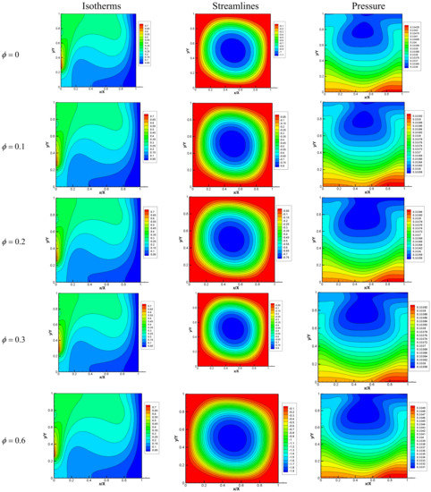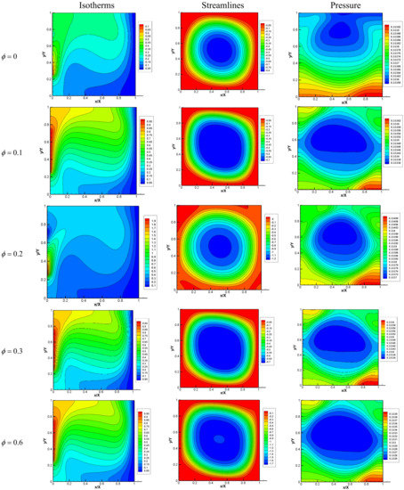 - Khanafer, K.; Vafai, K.; Lightstone, M. Buoyancy-driven heat transfer enhancement in a two-dimensional enclosure utilizing nanofluid. Int. J. Heat Mass Transf. 2003, 46, 3639–3653. [Google Scholar] [CrossRef]